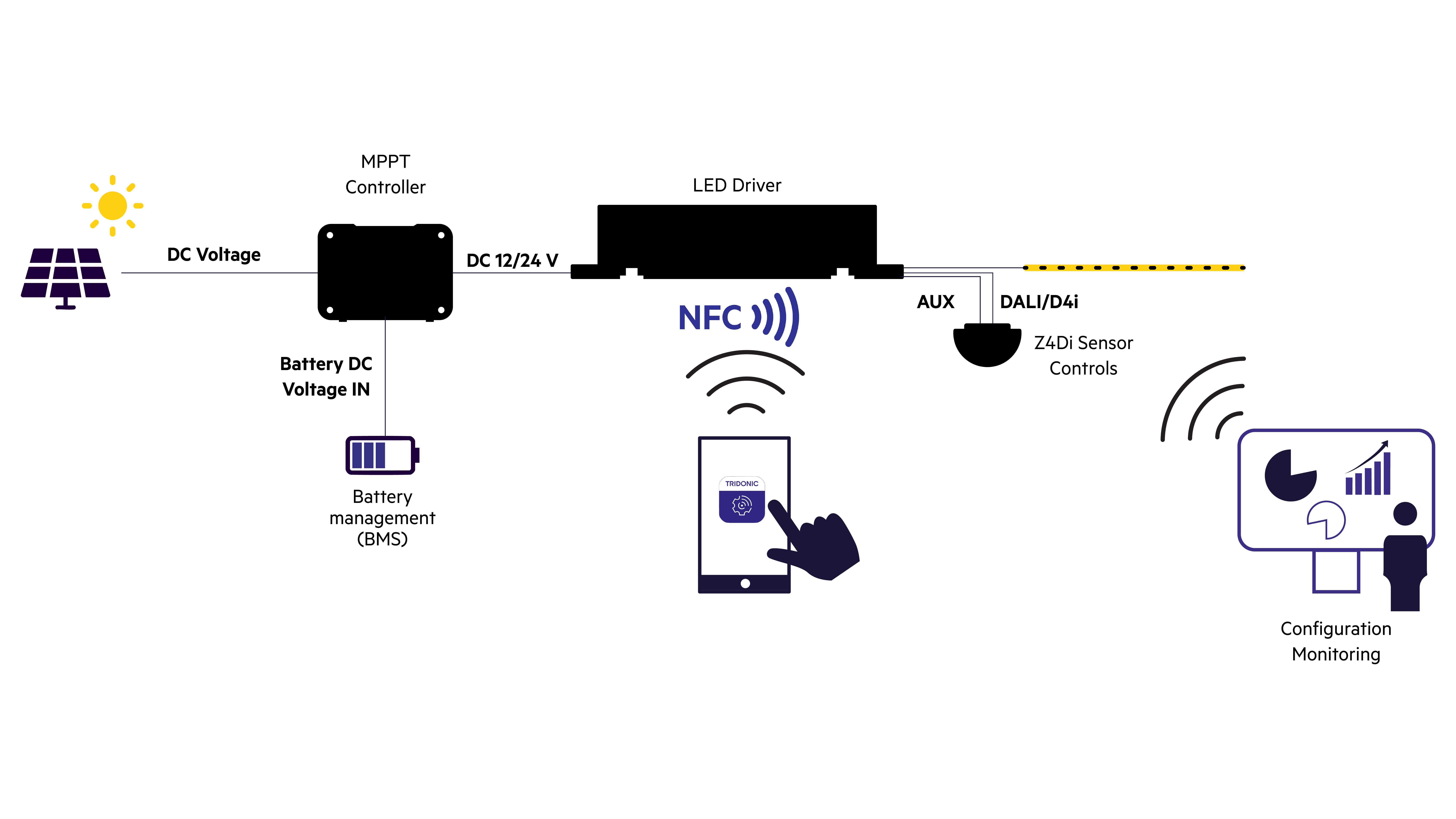 Le nouveau driver Led DC/DC “Iliora”, certifié D4i, permet d’intégrer différents capteurs et systèmes de gestion de l’éclairage. « Une solution peut donc être développée sur-mesure pour chaque champ d’application », souligne le constructeur pour qui « l’éclairage solaire devient ainsi une alternative fiable et évolutive, adaptée aux environnements urbains d’aujourd’hui ». Un contrôleur de charge MPPT (Maximal Point Point Tracking) gère le flux d’énergie et assure un transfert de l’énergie stockée vers les luminaires Led. L’intégration de capteurs et de commandes complète la solution, qu’il s’agisse d’un petit groupe de luminaires ou de l’aménagement intelligent de toute une ville.